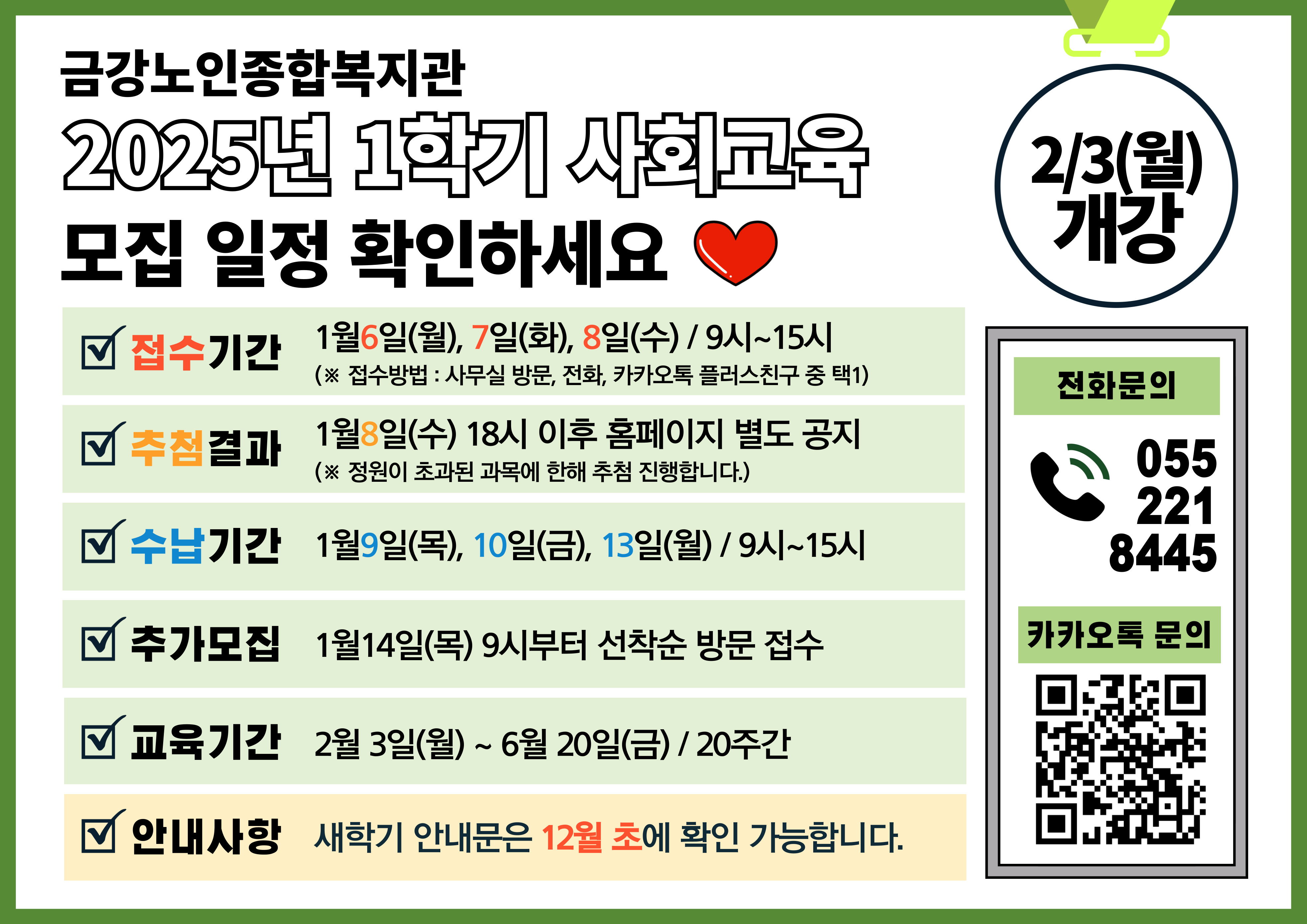 [노년교육] 2025년 1학기 노년교육프로그램 모집 일정 안내